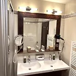 The rooms are equipped with a mini-fridge-bar, along with a flat-screen TV with satellite channels for guests' comfort. Bathroom comforts include hair dryers and dressing gowns, and such essentials as a bidet and a separate toilet.